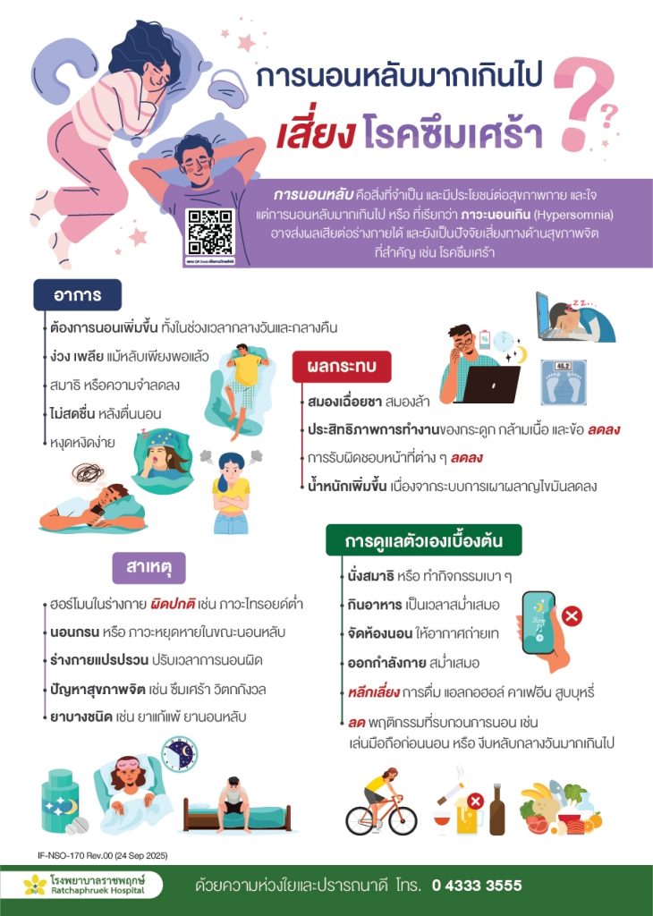 นอนหลับมากเกินไป เสี่ยงโรคซึมเศร้า 24 กันยายน 256827 ตุลาคม 2025qualityInfographics FacebookFacebookXXLINELine