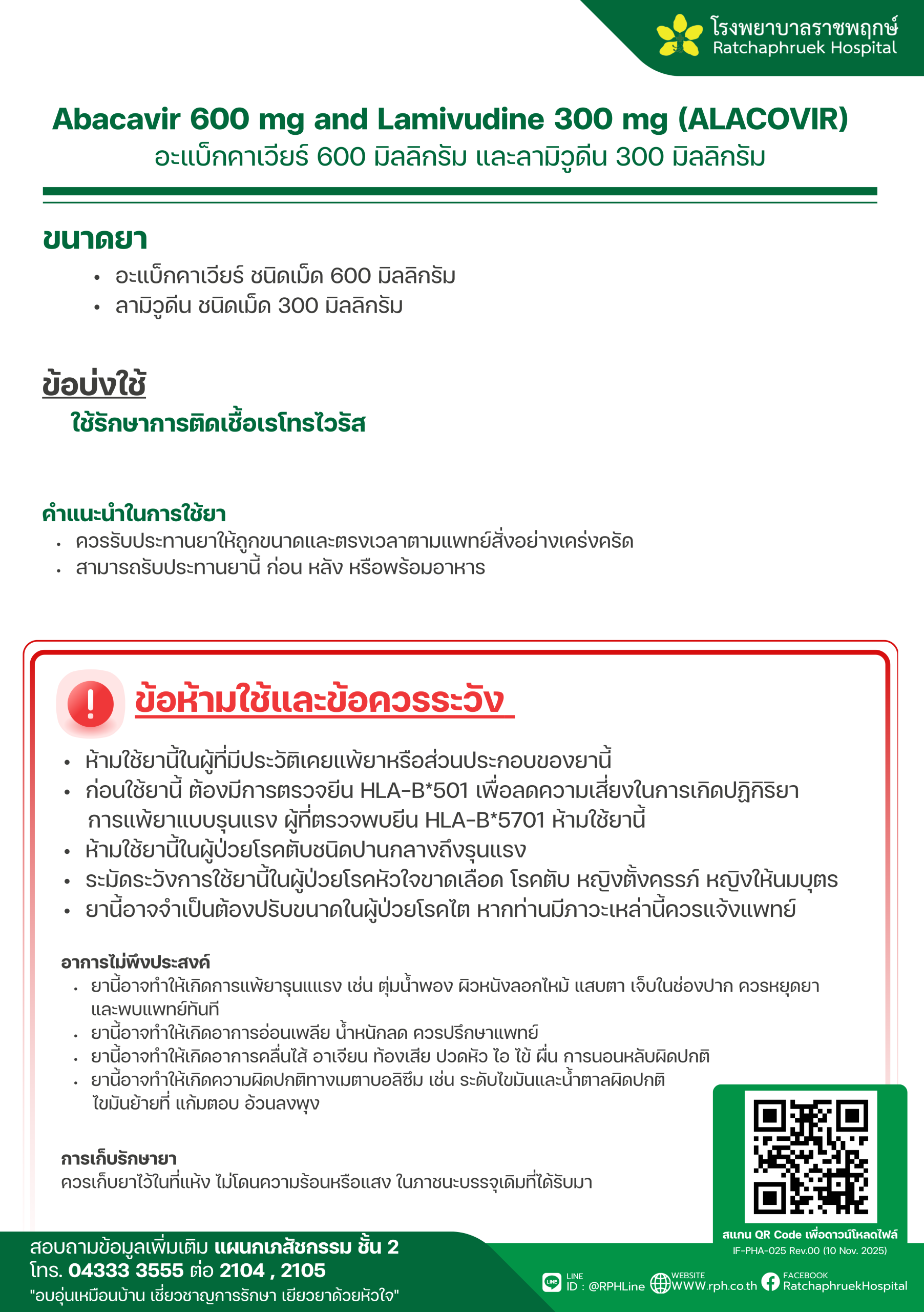 Drug Information Abacavir 600 mg and Lamivudine 300 mg (ALACOVIR) (อะแบ็กคาเวียร์ และลามิวูดีน) เมื่อวันที่ 30 ธันวาคม 2568