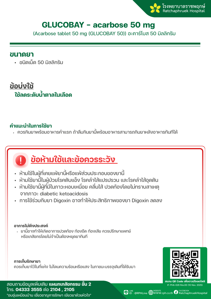 GLUCOBAY – acarbose 50 mg 30 ธันวาคม 25689 กุมภาพันธ์ 2026qualityDrug Information, ความรู้สุขภาพ FacebookFacebookXXLINELine
