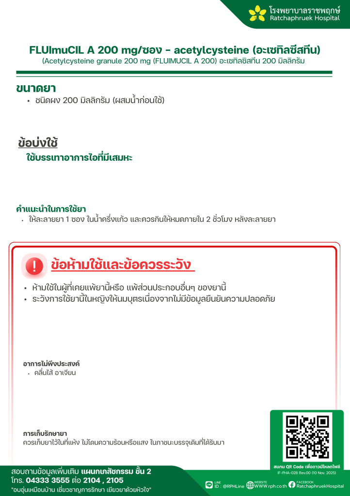 FLUImuCIL A 200 mgซอง – acetylcysteine (อะเซทิลซีสทีน) 30 ธันวาคม 25689 กุมภาพันธ์ 2026qualityDrug Information, ความรู้สุขภาพ FacebookFacebookXXLINELine