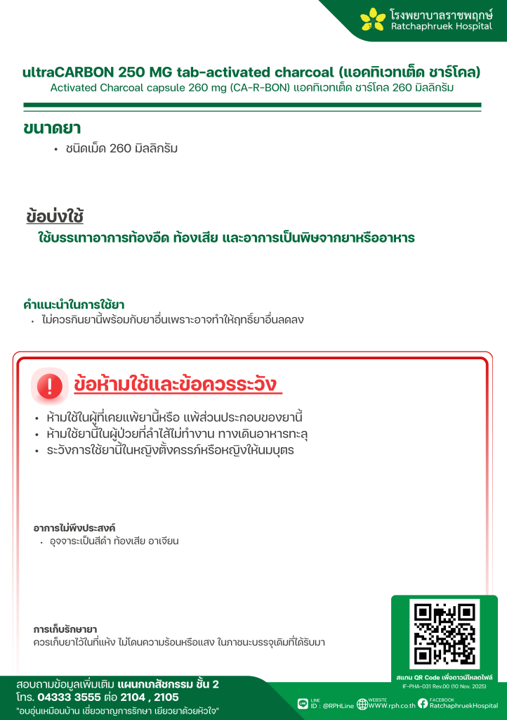ultraCARBON 250 MG tab-activated charcoal (แอคทิเวทเต็ด ชาร์โคล) 30 ธันวาคม 256810 กุมภาพันธ์ 2026qualityDrug Information, ความรู้สุขภาพ FacebookFacebookXXLINELine