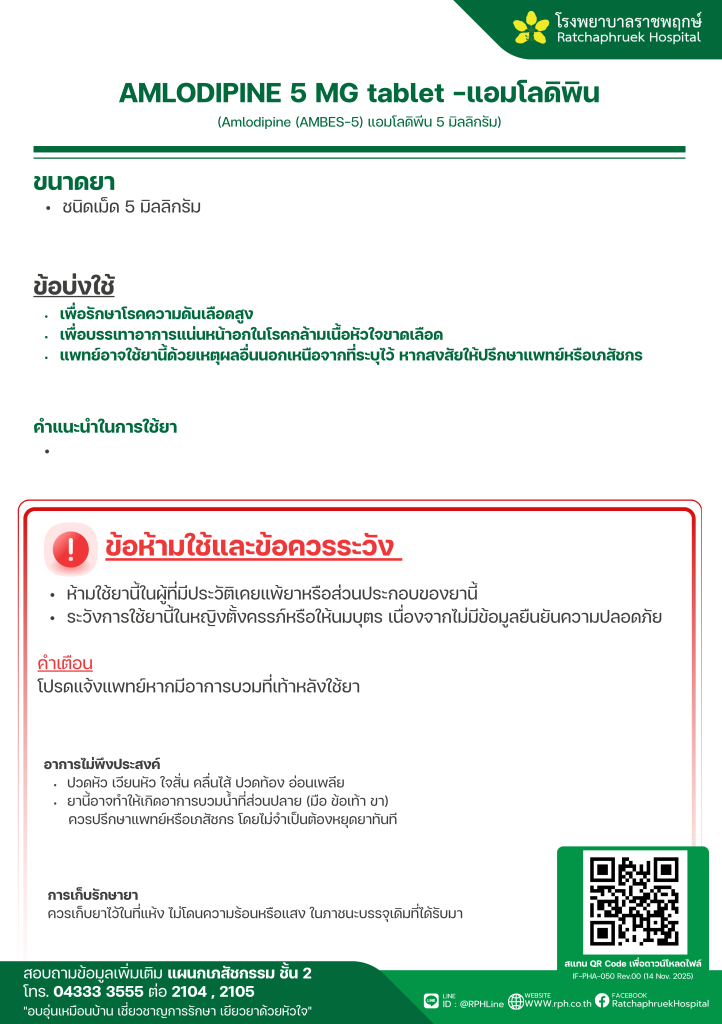 AMLODIPINE 5 MG tablet -แอมโลดิพิน 3 มกราคม 256910 กุมภาพันธ์ 2026qualityDrug Information, ความรู้สุขภาพ FacebookFacebookXXLINELine