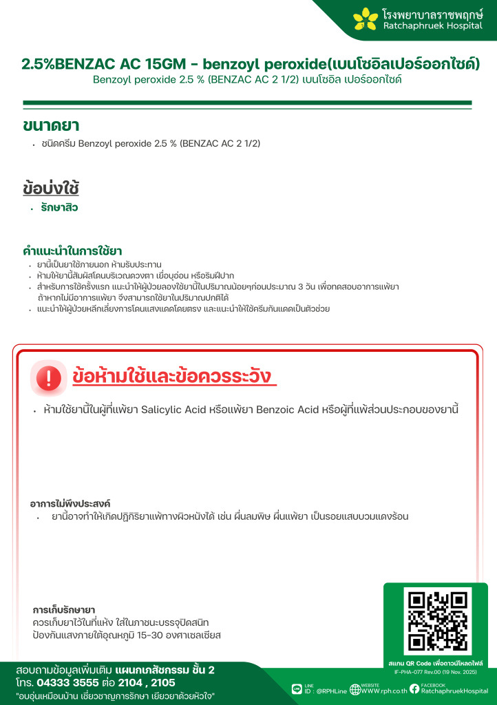 2.5%BENZAC AC 15GM – benzoyl peroxide(เบนโซอิลเปอร์ออกไซด์) 5 มกราคม 256910 กุมภาพันธ์ 2026qualityDrug Information, ความรู้สุขภาพ FacebookFacebookXXLINELine