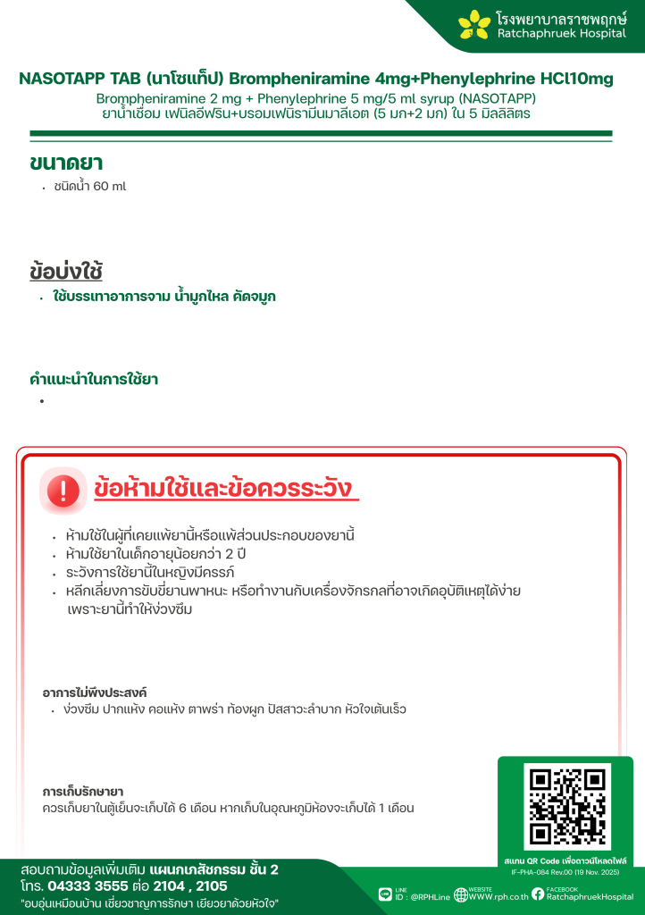NASOTAPP TAB (นาโซแท็ป) Brompheniramine 4mg+Phenylephrine HCl10mg 6 มกราคม 256911 กุมภาพันธ์ 2026qualityDrug Information, ความรู้สุขภาพ FacebookFacebookXXLINELine