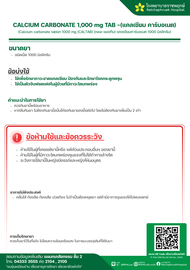 CALCIUM CARBONATE 1,000 mg TAB -(แคลเซียม คาร์บอเนต) 6 มกราคม 256911 กุมภาพันธ์ 2026qualityDrug Information, ความรู้สุขภาพ FacebookFacebookXXLINELine