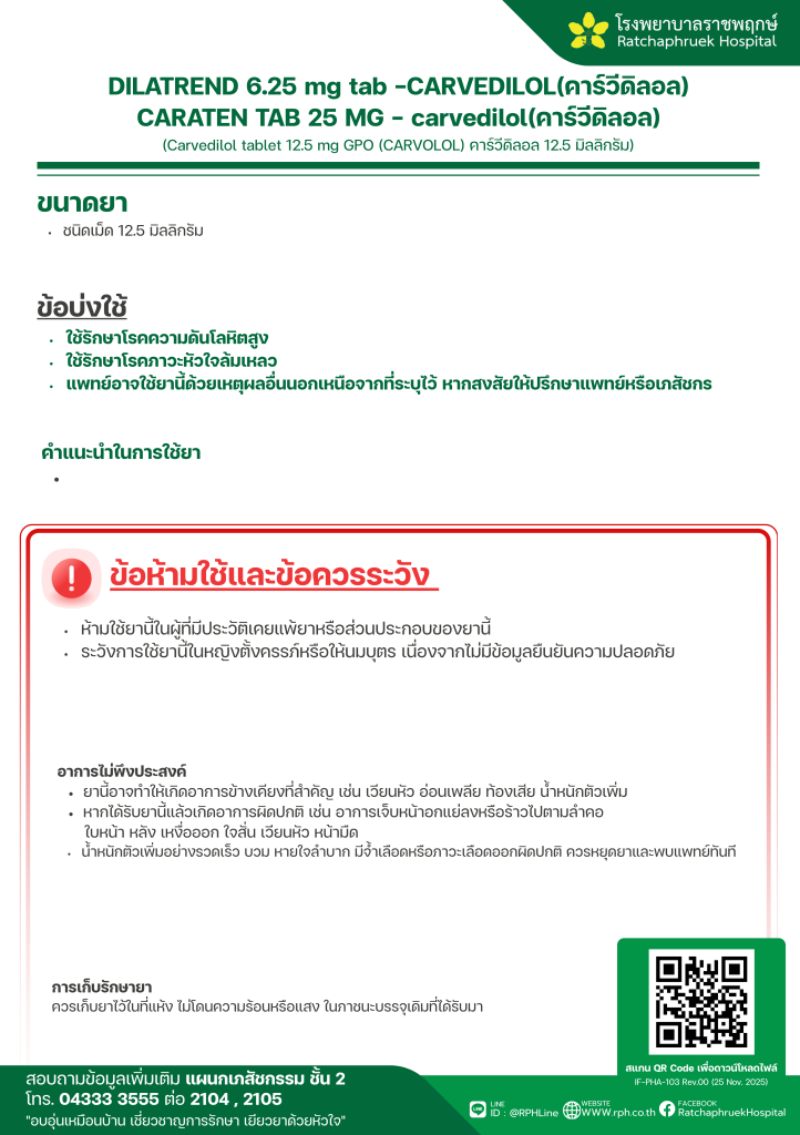 DILATREND 6.25 mg tab -CARVEDILOL(คาร์วีดิลอล) CARATEN TAB 25 MG – carvedilol(คาร์วีดิลอล) 7 มกราคม 256911 กุมภาพันธ์ 2026qualityDrug Information, ความรู้สุขภาพ FacebookFacebookXXLINELine