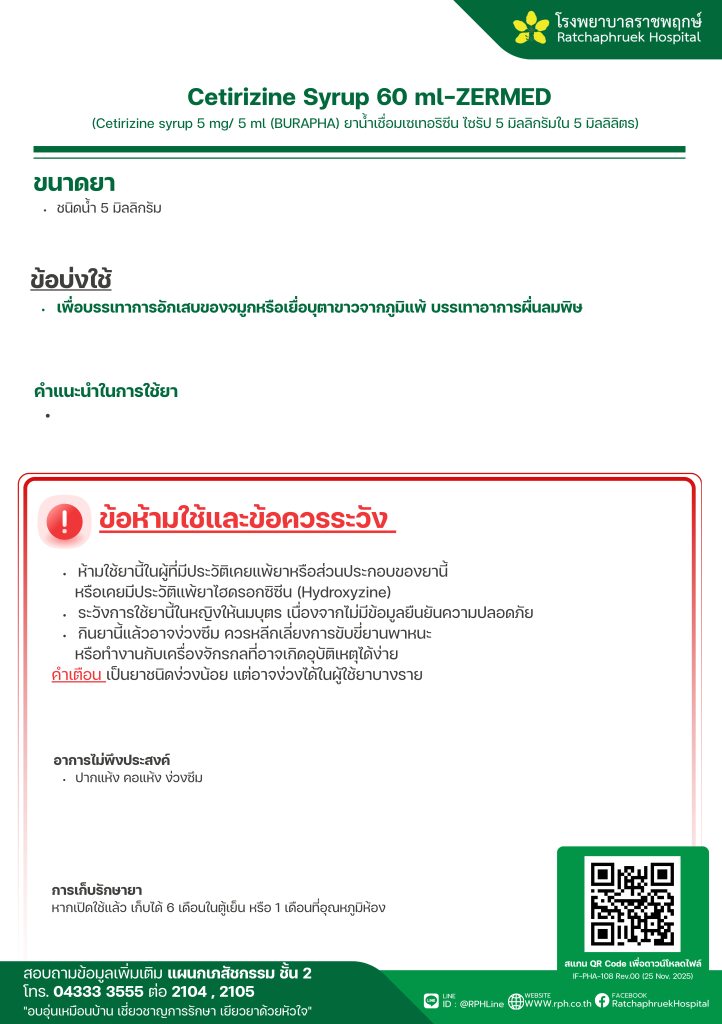Cetirizine Syrup 60 ml-ZERMED 7 มกราคม 256911 กุมภาพันธ์ 2026qualityDrug Information, ความรู้สุขภาพ FacebookFacebookXXLINELine