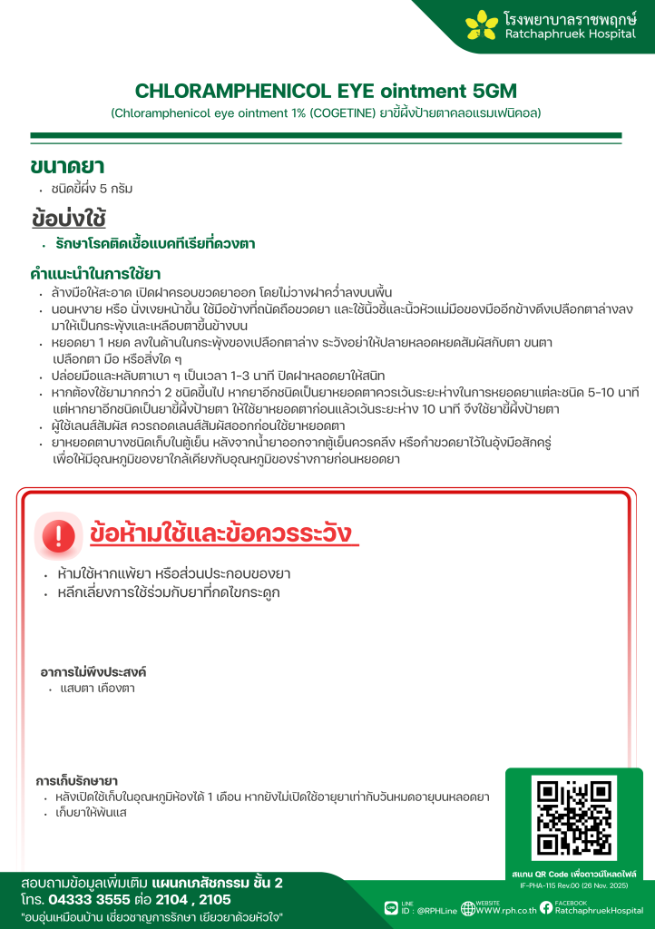 CHLORAMPHENICOL EYE ointment 5GM 7 มกราคม 256911 กุมภาพันธ์ 2026qualityDrug Information, ความรู้สุขภาพ FacebookFacebookXXLINELine