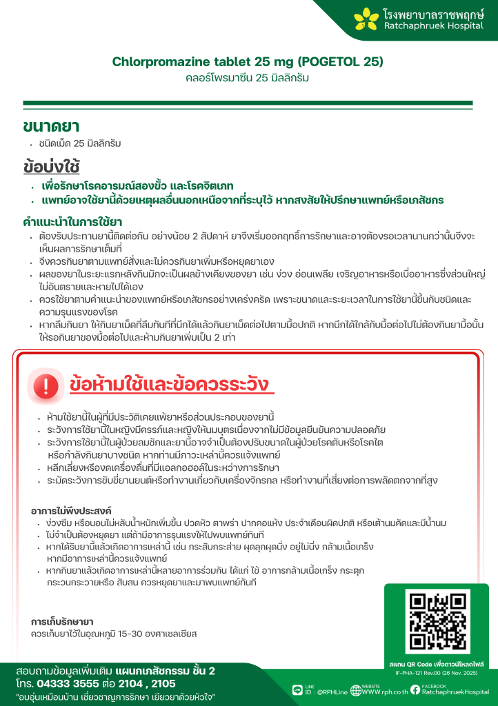 Chlorpromazine tablet 25 mg (POGETOL 25) (คลอร์โพรมา) 8 มกราคม 25698 มกราคม 2026qualityDrug Information, ความรู้สุขภาพ FacebookFacebookXXLINELine