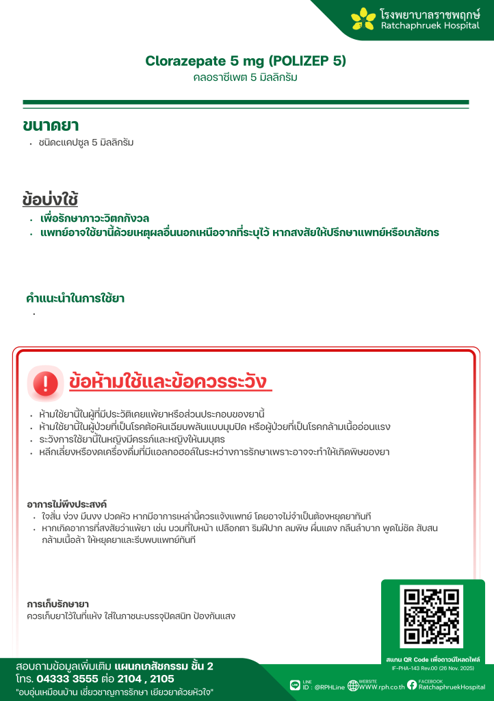 Clorazepate 5 mg (POLIZEP 5) (คลอราซีเพต) 9 มกราคม 25699 มกราคม 2026qualityDrug Information, ความรู้สุขภาพ FacebookFacebookXXLINELine