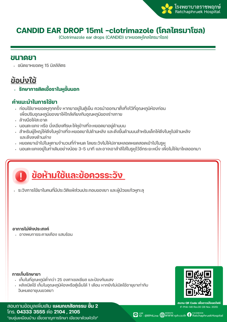 CANDID EAR DROP 15ml -clotrimazole (โคลไตรมาโซล) 9 มกราคม 256911 กุมภาพันธ์ 2026qualityDrug Information, ความรู้สุขภาพ FacebookFacebookXXLINELine