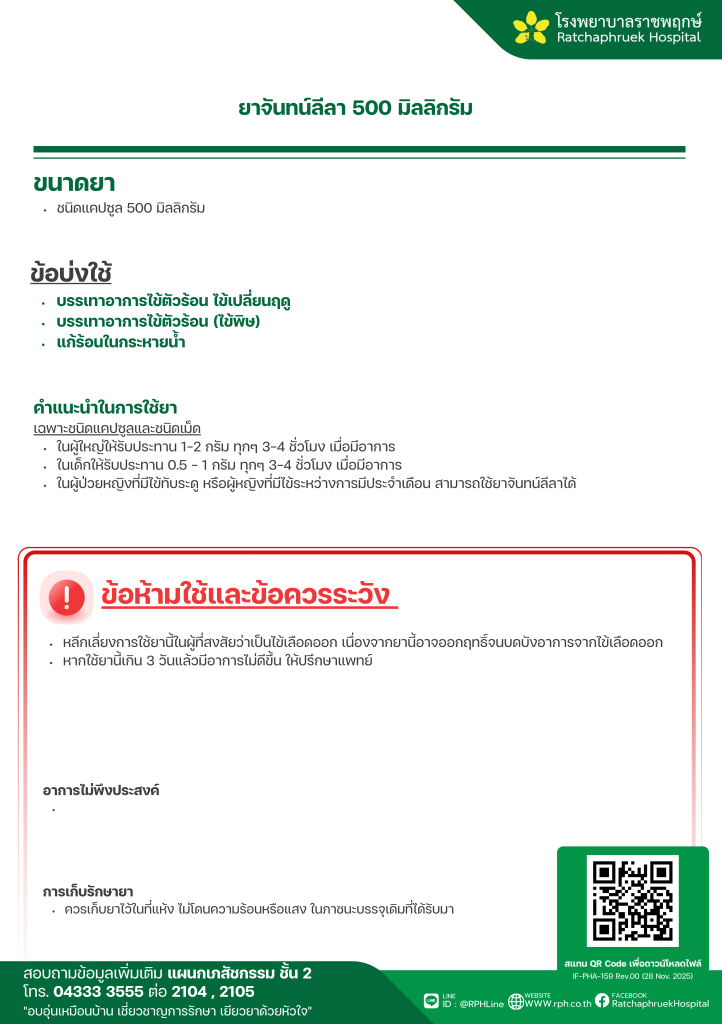 ยาจันทน์ลีลา 500 มิลลิกรัม 10 มกราคม 256910 มกราคม 2026qualityDrug Information, ความรู้สุขภาพ FacebookFacebookXXLINELine