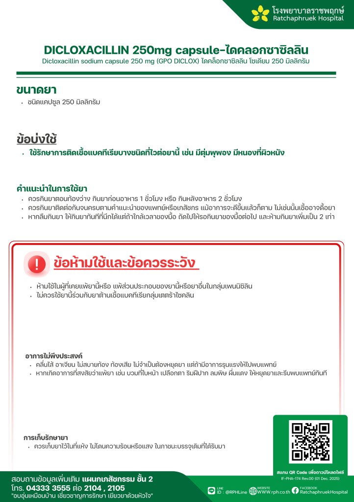 DICLOXACILLIN 250mg capsule-ไดคลอกซาซิลลิน 12 มกราคม 256913 กุมภาพันธ์ 2026qualityDrug Information, ความรู้สุขภาพ FacebookFacebookXXLINELine