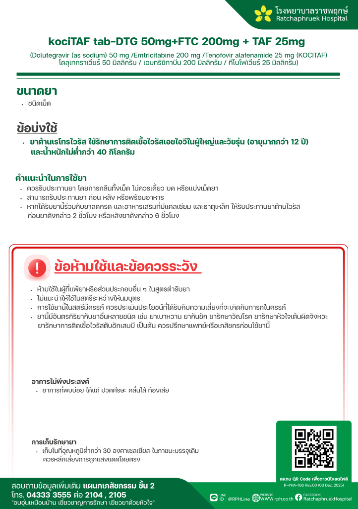 kociTAF tab-DTG 50mg+FTC 200mg + TAF 25mg 12 มกราคม 256913 กุมภาพันธ์ 2026qualityDrug Information, ความรู้สุขภาพ FacebookFacebookXXLINELine