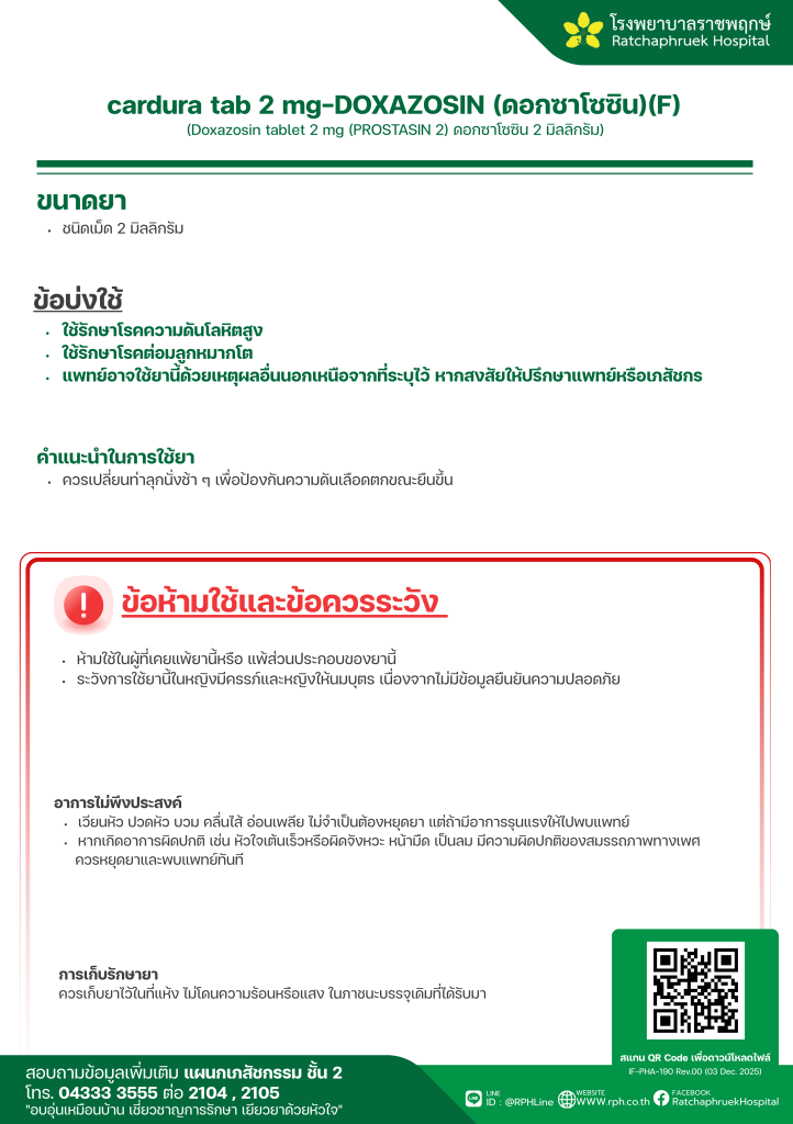 cardura tab 2 mg-DOXAZOSIN (ดอกซาโซซิน)(F) 12 มกราคม 256916 กุมภาพันธ์ 2026qualityDrug Information, ความรู้สุขภาพ FacebookFacebookXXLINELine