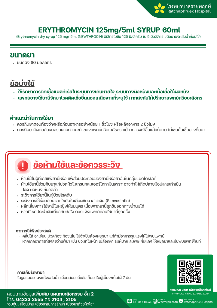 ERYTHROMYCIN 125mg5ml SYRUP 60ml 12 มกราคม 256916 กุมภาพันธ์ 2026qualityDrug Information, ความรู้สุขภาพ FacebookFacebookXXLINELine
