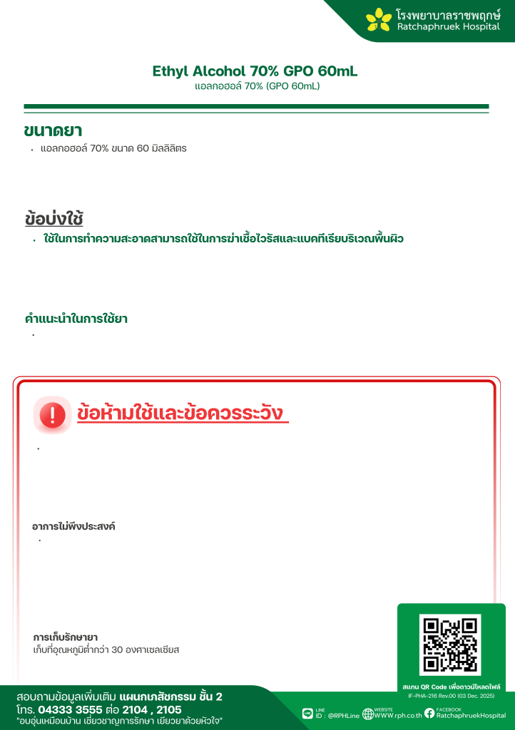 Ethyl Alcohol 70% GPO 60mL (แอลกอฮอล์ 70%) 12 มกราคม 256912 มกราคม 2026qualityDrug Information, ความรู้สุขภาพ FacebookFacebookXXLINELine