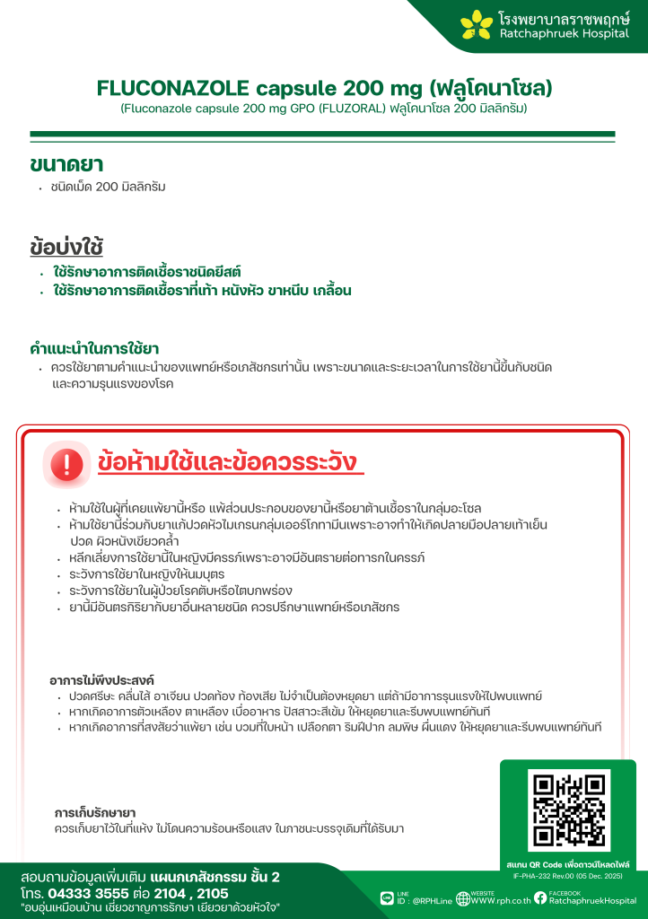 FLUCONAZOLE capsule 200 mg (ฟลูโคนาโซล) 13 มกราคม 256916 กุมภาพันธ์ 2026qualityDrug Information, ความรู้สุขภาพ FacebookFacebookXXLINELine