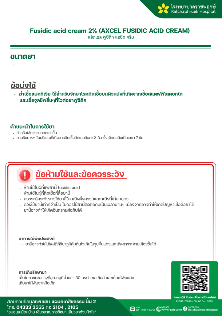 Fusidic acid cream 2% (AXCEL FUSIDIC ACID CREAM) (แอ็กเซล ฟูซิดิก แอซิด) 13 มกราคม 256913 มกราคม 2026qualityDrug Information, ความรู้สุขภาพ FacebookFacebookXXLINELine