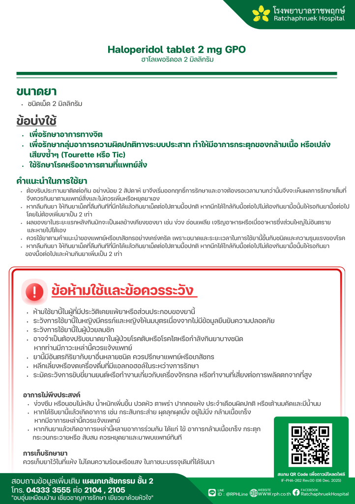 Haloperidol tablet 2 mg GPO (ฮาโลเพอริดอล) 13 มกราคม 256913 มกราคม 2026qualityDrug Information, ความรู้สุขภาพ FacebookFacebookXXLINELine