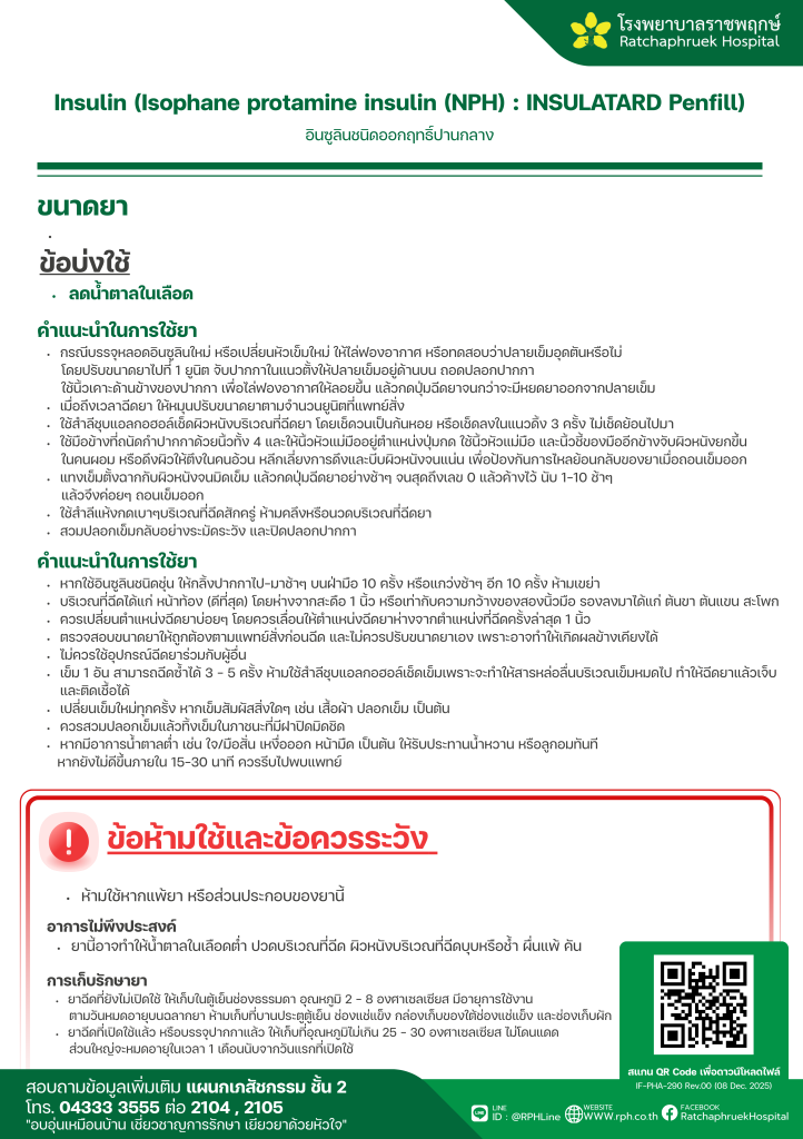 Drug Information Insulin (Isophane protamine insulin (NPH) : INSULATARD Penfill) (อินซูลินชนิดออกฤทธิ์ปานกลาง) เมื่อวันที่ 14 มกราคม 2569