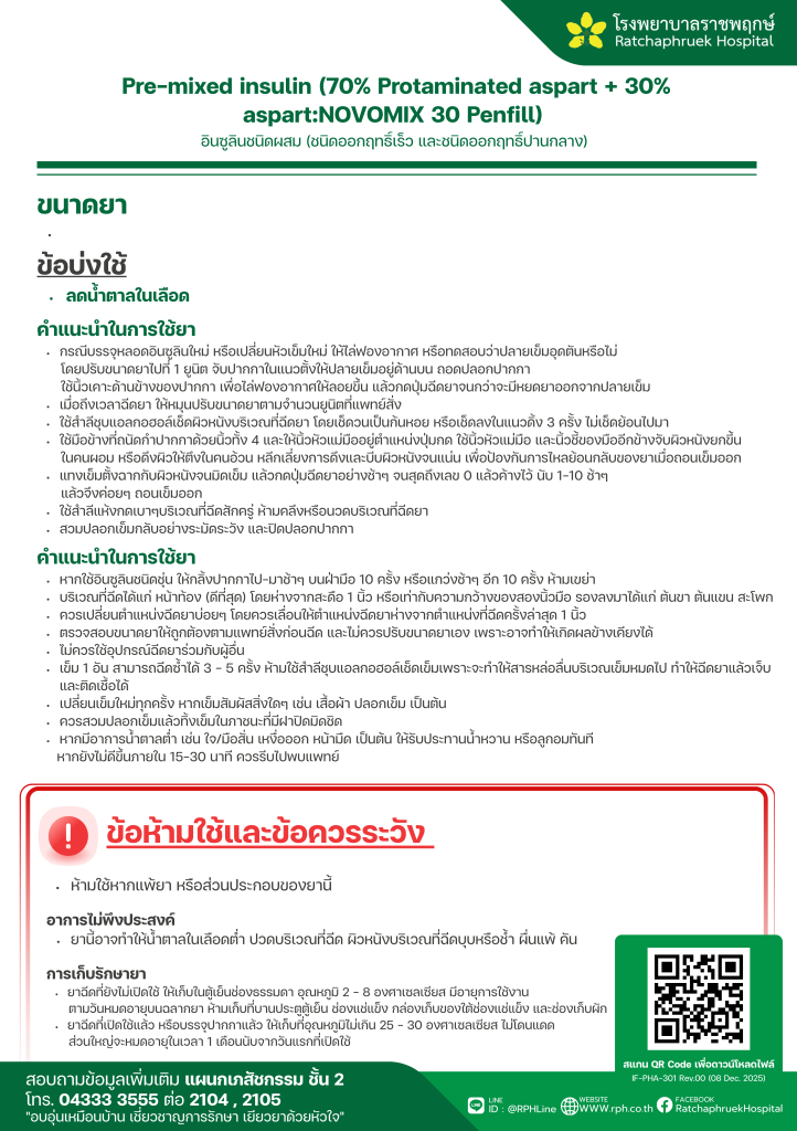 Pre-mixed insulin (70% Protaminated aspart + 30% aspart:NOVOMIX 30 Penfill) (อินซูลินชนิดผสม ชนิดออกฤทธิ์เร็ว และชนิดออกฤทธิ์ปานกลาง) 14 มกราคม 256914 มกราคม 2026qualityDrug Information, ความรู้สุขภาพ FacebookFacebookXXLINELine