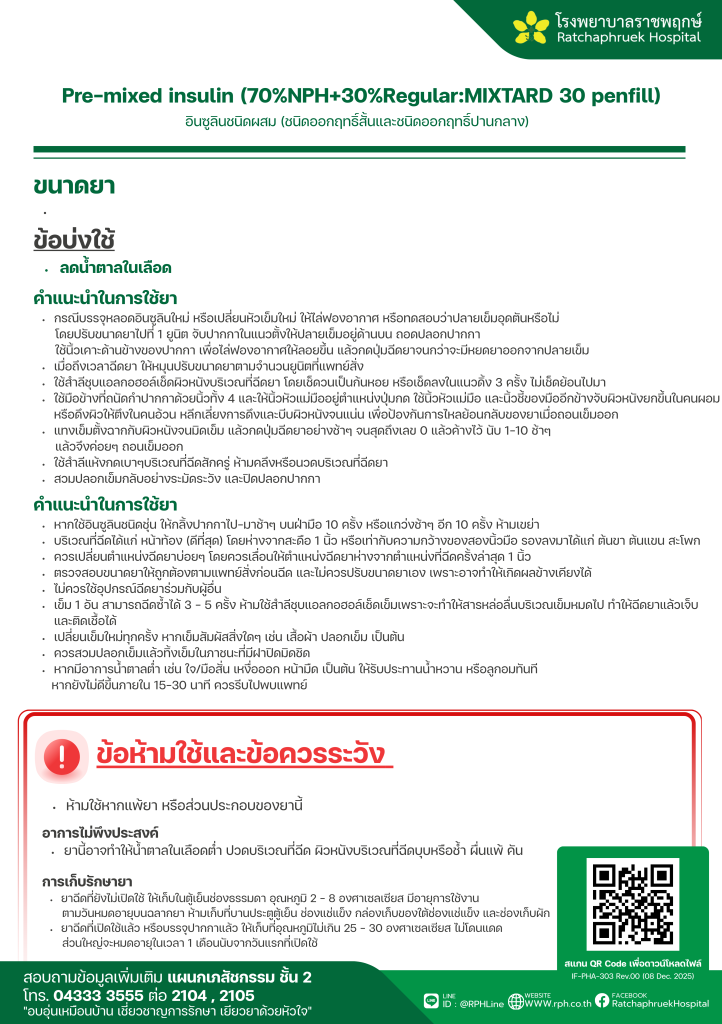 Pre-mixed insulin (70%NPH+30%Regular:MIXTARD 30 penfill) (อินซูลินชนิดผสม ชนิดออกฤทธิ์สั้นและชนิดออกฤทธิ์ปานกลาง) 14 มกราคม 256914 มกราคม 2026qualityDrug Information, ความรู้สุขภาพ FacebookFacebookXXLINELine