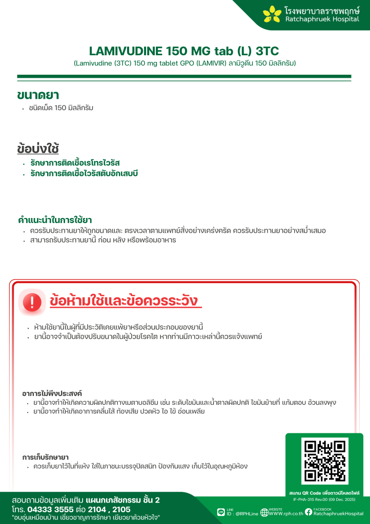 LAMIVUDINE 150 MG tab (L) 3TC 16 มกราคม 256919 กุมภาพันธ์ 2026qualityDrug Information, ความรู้สุขภาพ FacebookFacebookXXLINELine