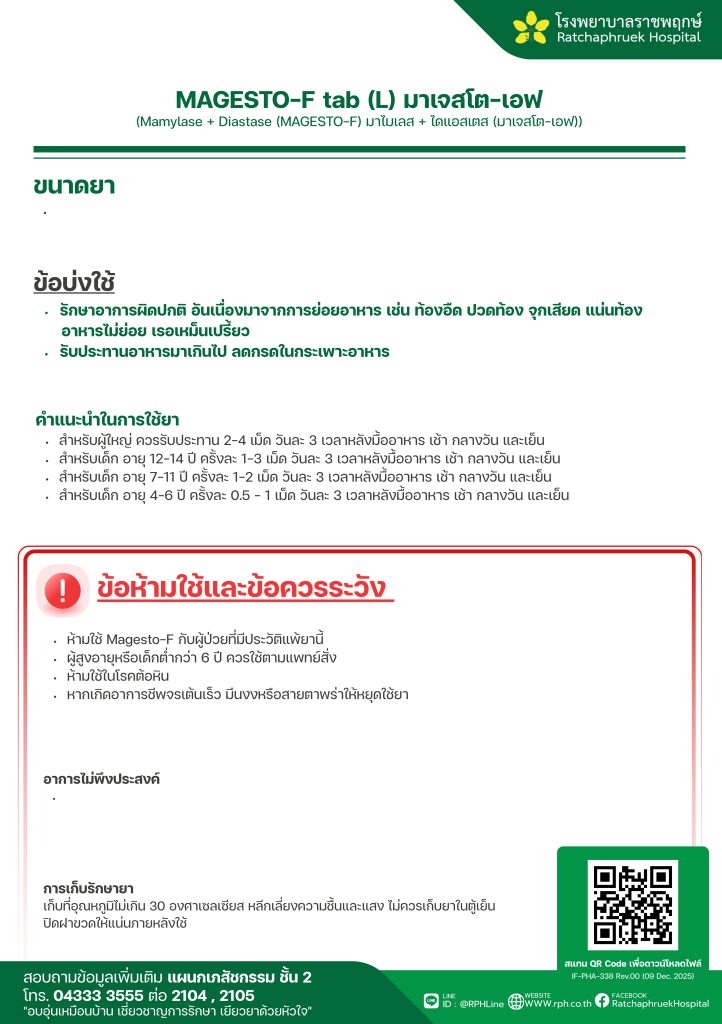 MAGESTO-F tab (L) มาเจสโต-เอฟ 19 มกราคม 256919 กุมภาพันธ์ 2026qualityDrug Information, ความรู้สุขภาพ FacebookFacebookXXLINELine
