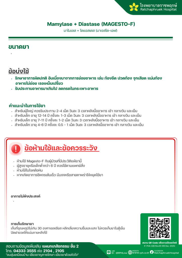 Mamylase + Diastase (MAGESTO-F) (มาเจสโต-เอฟ) 19 มกราคม 256919 มกราคม 2026qualityDrug Information, ความรู้สุขภาพ FacebookFacebookXXLINELine
