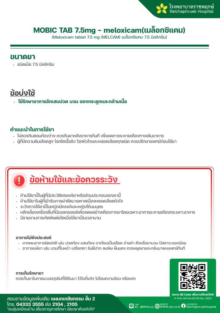 MOBIC TAB 7.5mg – meloxicam(เมล็อกซิแคม) 20 มกราคม 256919 กุมภาพันธ์ 2026qualityDrug Information, ความรู้สุขภาพ FacebookFacebookXXLINELine