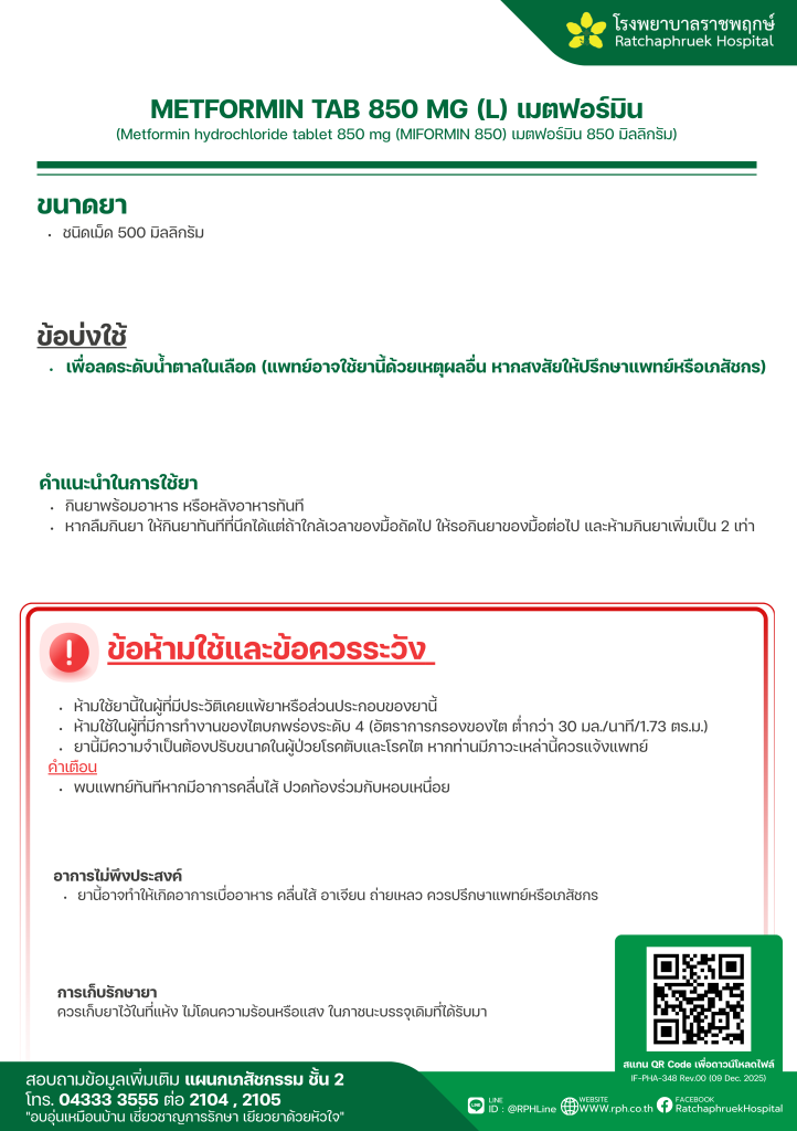 METFORMIN TAB 850 MG (L) เมตฟอร์มิน 20 มกราคม 256919 กุมภาพันธ์ 2026qualityDrug Information, ความรู้สุขภาพ FacebookFacebookXXLINELine
