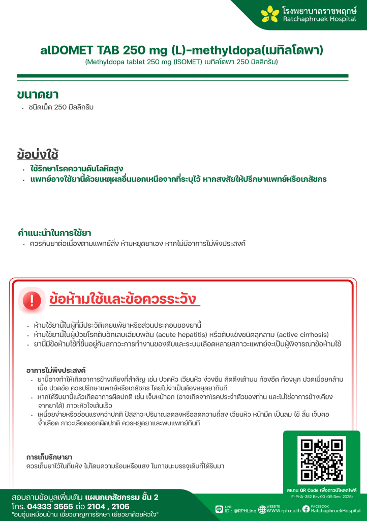 alDOMET TAB 250 mg (L)-methyldopa(เมทิลโดพา) 20 มกราคม 256920 กุมภาพันธ์ 2026qualityDrug Information, ความรู้สุขภาพ FacebookFacebookXXLINELine
