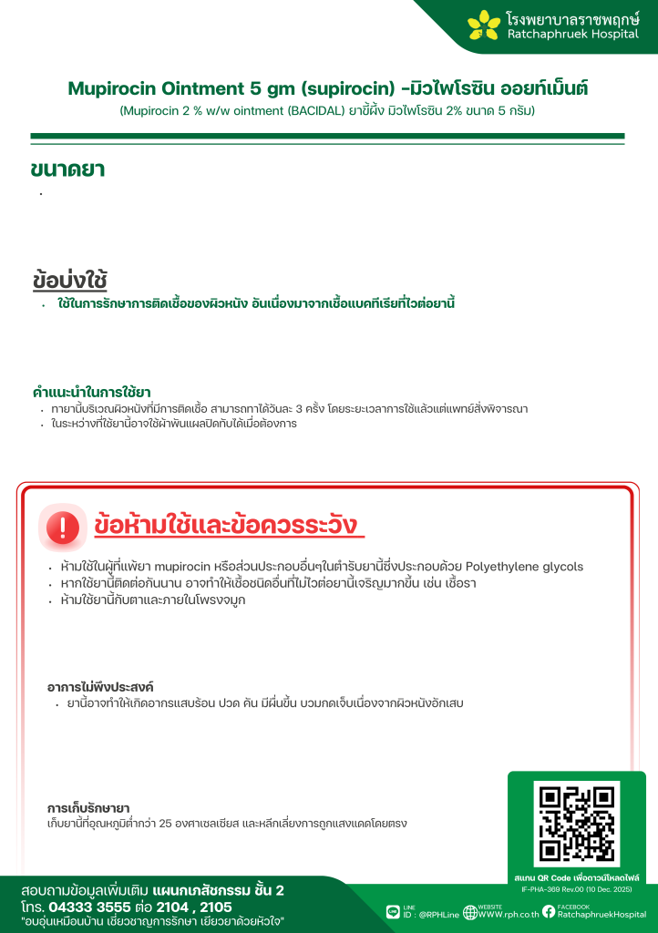 Mupirocin Ointment 5 gm (supirocin) -มิวไพโรซิน ออยท์เม็นต์ 26 มกราคม 256920 กุมภาพันธ์ 2026qualityDrug Information, ความรู้สุขภาพ FacebookFacebookXXLINELine