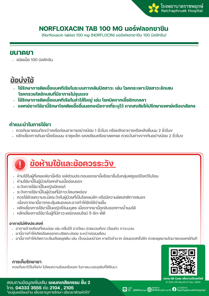 NORFLOXACIN TAB 100 MG นอร์ฟลอกซาซิน 27 มกราคม 256920 กุมภาพันธ์ 2026qualityDrug Information, ความรู้สุขภาพ FacebookFacebookXXLINELine