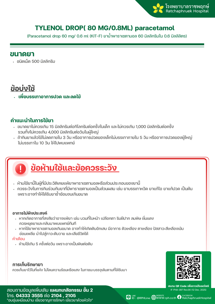 TYLENOL DROP( 80 MG0.8ML) paracetamol 27 มกราคม 256920 กุมภาพันธ์ 2026qualityDrug Information, ความรู้สุขภาพ FacebookFacebookXXLINELine