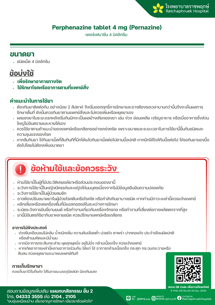 Perphenazine tablet 4 mg (Pernazine) (เพอร์เฟนาซีน) 28 มกราคม 256928 มกราคม 2026qualityDrug Information, ความรู้สุขภาพ FacebookFacebookXXLINELine