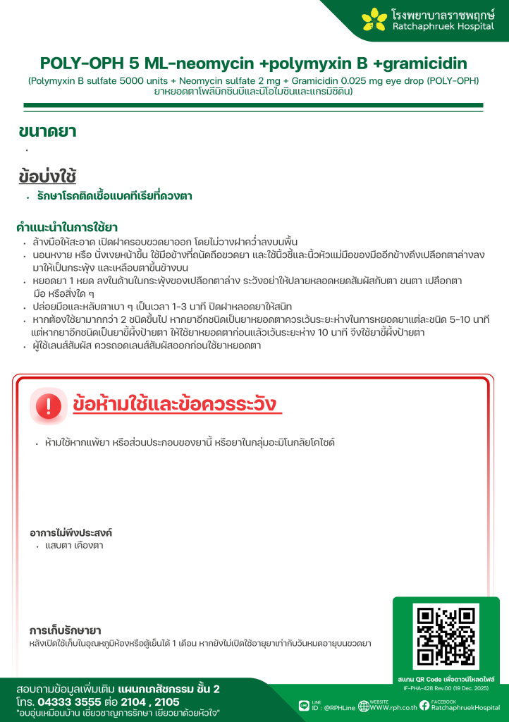 POLY-OPH 5 ML-neomycin +polymyxin B +gramicidin 28 มกราคม 256920 กุมภาพันธ์ 2026qualityDrug Information, ความรู้สุขภาพ FacebookFacebookXXLINELine