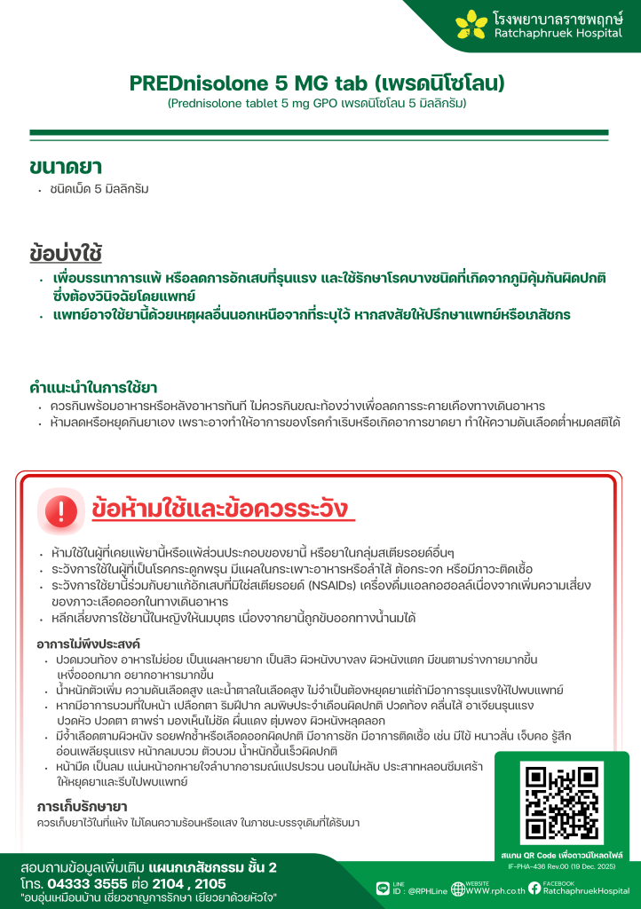 PREDnisolone 5 MG tab (เพรดนิโซโลน) 29 มกราคม 256920 กุมภาพันธ์ 2026qualityDrug Information, ความรู้สุขภาพ FacebookFacebookXXLINELine