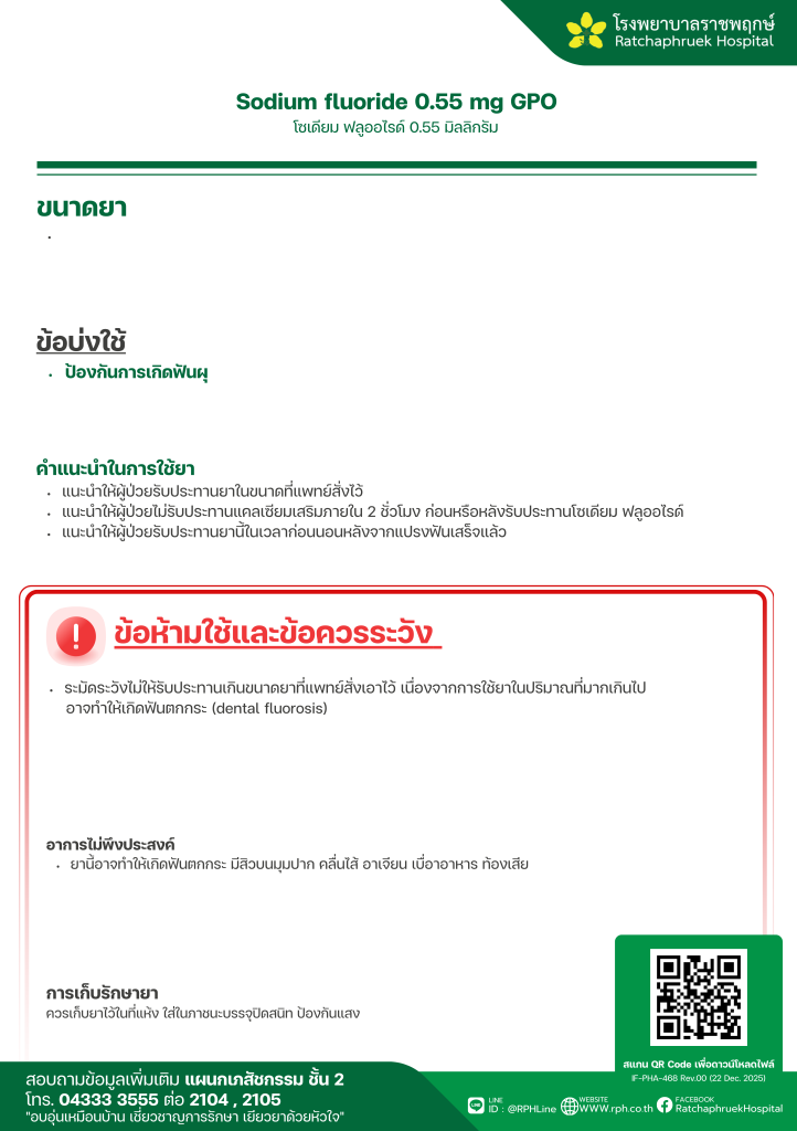 Sodium fluoride 0.55 mg GPO (โซเดียม ฟลูออไรด์) 29 มกราคม 256929 มกราคม 2026qualityDrug Information, ความรู้สุขภาพ FacebookFacebookXXLINELine