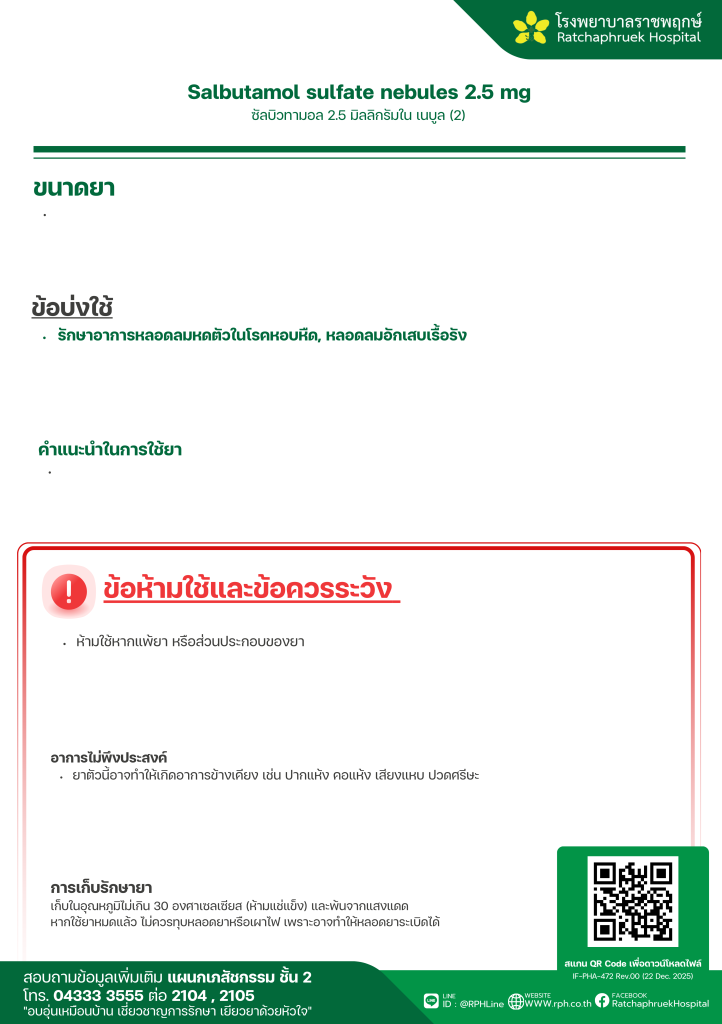 Salbutamol sulfate nebules 2.5 mg (ซัลบิวทามอล) 29 มกราคม 256929 มกราคม 2026qualityDrug Information, ความรู้สุขภาพ FacebookFacebookXXLINELine