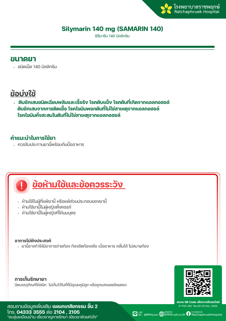 Silymarin 140 mg (SAMARIN 140) (ซีลีมารีน) 29 มกราคม 256929 มกราคม 2026qualityDrug Information, ความรู้สุขภาพ FacebookFacebookXXLINELine