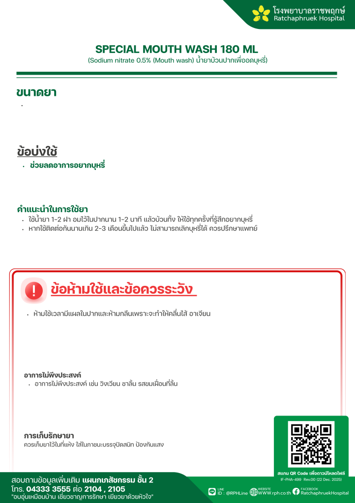SPECIAL MOUTH WASH 180 ML 30 มกราคม 256921 กุมภาพันธ์ 2026qualityDrug Information, ความรู้สุขภาพ FacebookFacebookXXLINELine