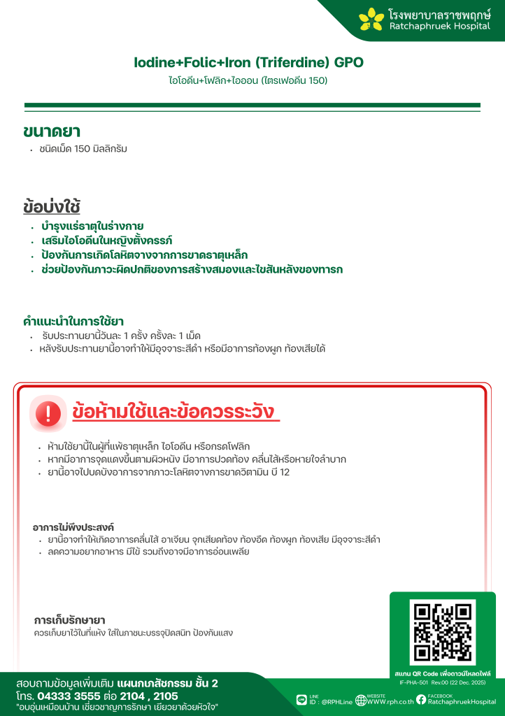 Iodine+Folic+Iron (Triferdine) GPO (ไตรเฟอดีน) 30 มกราคม 256930 มกราคม 2026qualityDrug Information, ความรู้สุขภาพ FacebookFacebookXXLINELine
