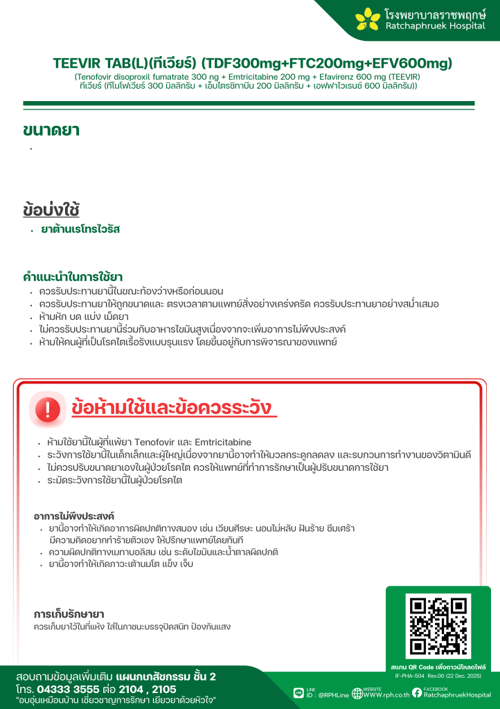 IF-PHA-504 TEEVIR TAB(L)(ทีเวียร์) (TDF300mg+FTC200mg+EFV600mg) 30 มกราคม 256921 กุมภาพันธ์ 2026qualityDrug Information, ความรู้สุขภาพ FacebookFacebookXXLINELine
