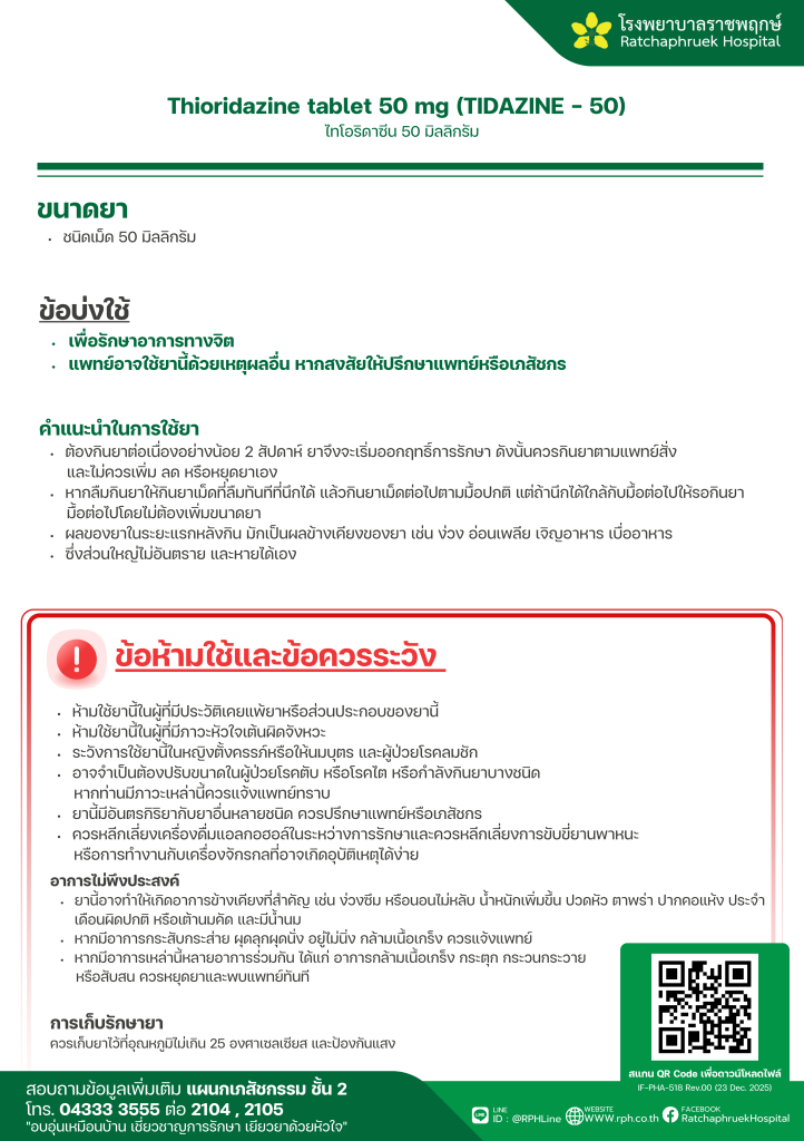 Thioridazine tablet 50 mg (TIDAZINE – 50) (ไทโอริดาซีน) 30 มกราคม 256930 มกราคม 2026qualityDrug Information, ความรู้สุขภาพ FacebookFacebookXXLINELine