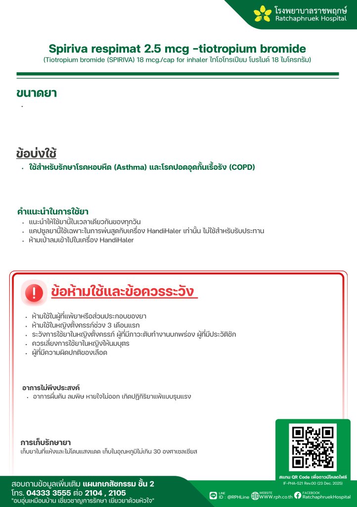 Spiriva respimat 2.5 mcg -tiotropium bromide 30 มกราคม 256921 กุมภาพันธ์ 2026qualityDrug Information, ความรู้สุขภาพ FacebookFacebookXXLINELine