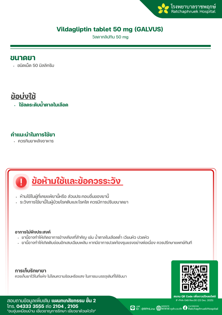 Vildagliptin tablet 50 mg (GALVUS) (วิลดากลิปทิน) 2 กุมภาพันธ์ 25692 กุมภาพันธ์ 2026qualityDrug Information, ความรู้สุขภาพ FacebookFacebookXXLINELine