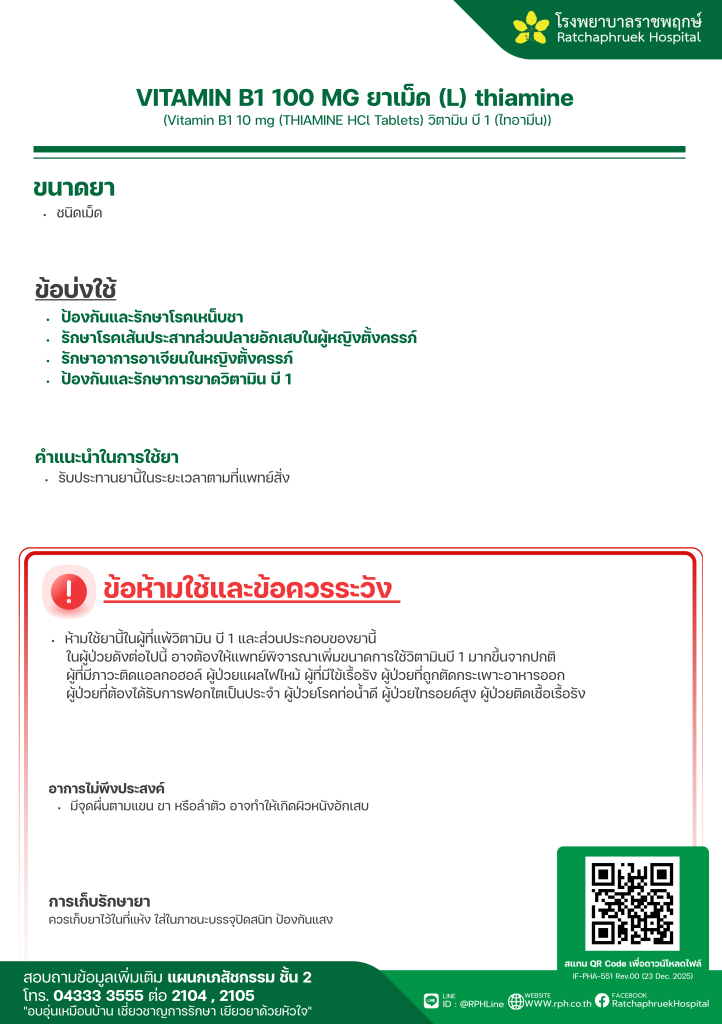 VITAMIN B1 100 MG ยาเม็ด (L) thiamine 2 กุมภาพันธ์ 256921 กุมภาพันธ์ 2026qualityDrug Information, ความรู้สุขภาพ FacebookFacebookXXLINELine