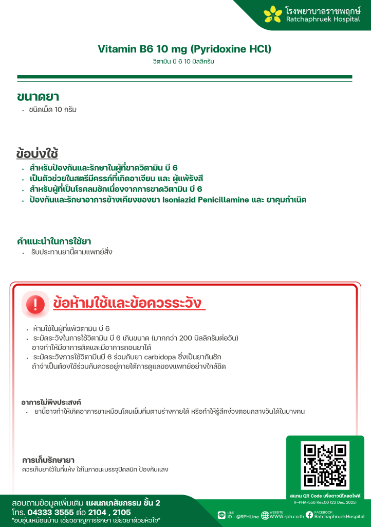 Vitamin B6 10 mg (Pyridoxine HCl) (วิตามิน บี 6) 2 กุมภาพันธ์ 25692 กุมภาพันธ์ 2026qualityDrug Information, ความรู้สุขภาพ FacebookFacebookXXLINELine